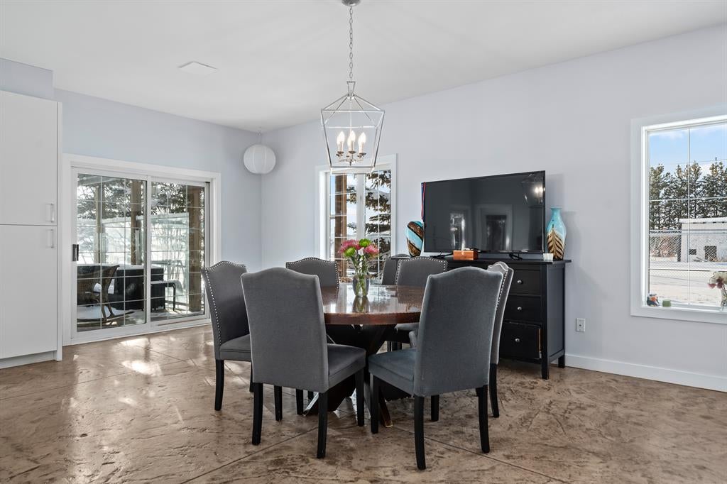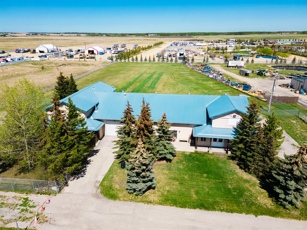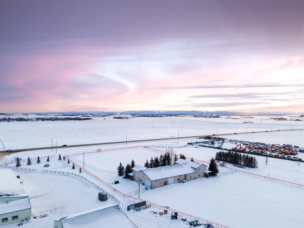 RARE LIVE/WORK OPPORTUNITY WITH EXCELLENT ROAD EXPOSURE FOR YOUR BUSINESS! 3.35 ACRES, ZONED C-HWY (MIXED USE, SEE SUPPLEMENTS FOR DETAILS). This one-of-a-kind property is located 10 minutes north of Cochrane (HWY 22 & HWY 567) and offers a fully renovated 2751 SQ FT home with a 4169 SQ FT commercial space. The bright and open main floor features a spacious living room with office space, a cozy dining room, and a 3 piece bath/laundry all highlighted by gorgeous stamped concrete floors. The luxurious chef’s kitchen offers quartz countertops, a spacious island/breakfast bar, a coffee station with a second sink, ample cabinet space, and high-end appliances – perfect for entertaining and the at-home gourmet. Upstairs, relax in the primary retreat which includes an upscale 5-piece ensuite (relaxing soaker tub, stand-up shower, double sinks), a large walk-in closet, and views of the Rocky Mountains. Completing the upstairs are 3 additional bedrooms, a 4 piece bathroom, and plenty of storage. You will fall in love with the oversized (49'2" x 21'2" 0), heated/insulated garage where you could easily park 6 vehicles/toys - perfect for a home mechanic, car enthusiast, or tradesperson. The commercial space offers a huge showroom, front desk, office, 2 bathrooms, loft/office, and additional garage. This space is ideal for any entrepreneur or established business. Other features included a custom log wood staircase, a large patio, new chain link fencing & amazing views. Ideally located just minutes from Cochrane and a short commute to Calgary this property offers huge potential and would be hard to recreate. Please reach out for more details and to arrange a private viewing. *** RESIDENTIAL - 2751 SQ FT, COMMERCIAL - 4169 SQ FT. ***