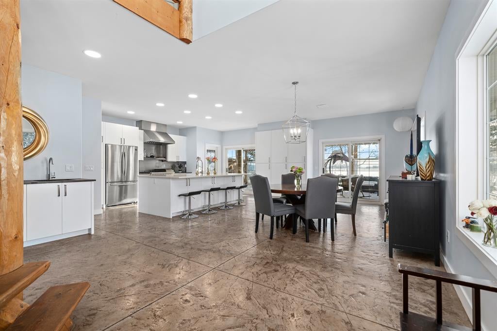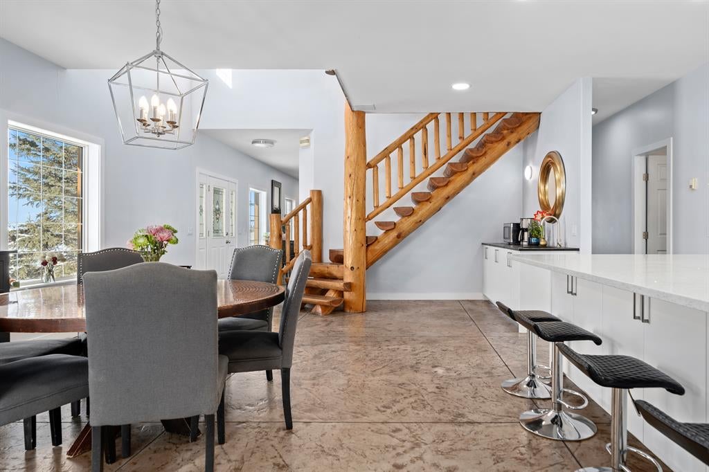 RARE LIVE/WORK OPPORTUNITY WITH EXCELLENT ROAD EXPOSURE FOR YOUR BUSINESS! 3.35 ACRES, ZONED C-HWY (MIXED USE, SEE SUPPLEMENTS FOR DETAILS). This one-of-a-kind property is located 10 minutes north of Cochrane (HWY 22 & HWY 567) and offers a fully renovated 2759 SQ FT home with a 4169 SQ FT commercial space. The bright and open main floor features a spacious living room with office space, a cozy dining room, and a 3 piece bath/laundry all highlighted by gorgeous stamped concrete floors. The luxurious chef’s kitchen offers quartz countertops, a spacious island/breakfast bar, a coffee station with a second sink, ample cabinet space, and high-end appliances – perfect for entertaining and the at-home gourmet. Upstairs, relax in the primary retreat which includes an upscale 5-piece ensuite (relaxing soaker tub, stand-up shower, double sinks), a large walk-in closet, and views of the Rocky Mountains. Completing the upstairs are 3 additional bedrooms, a 4 piece bathroom, and plenty of storage. You will fall in love with the oversized (49'2" x 21'2" 0), heated/insulated garage where you could easily park 6 vehicles/toys - perfect for a home mechanic, car enthusiast, or tradesperson. The commercial space offers a huge showroom, front desk, office, 2 bathrooms, loft/office, and additional garage. This space is ideal for any entrepreneur or established business. Other features included a custom log wood staircase, a large patio, new chain link fencing & amazing views. Ideally located just minutes from Cochrane and a short commute to Calgary this property offers huge potential and would be hard to recreate. Please reach out for more details and to arrange a private viewing. *** RESIDENTIAL - 2751 SQ FT, COMMERCIAL - 4169 SQ FT. ***